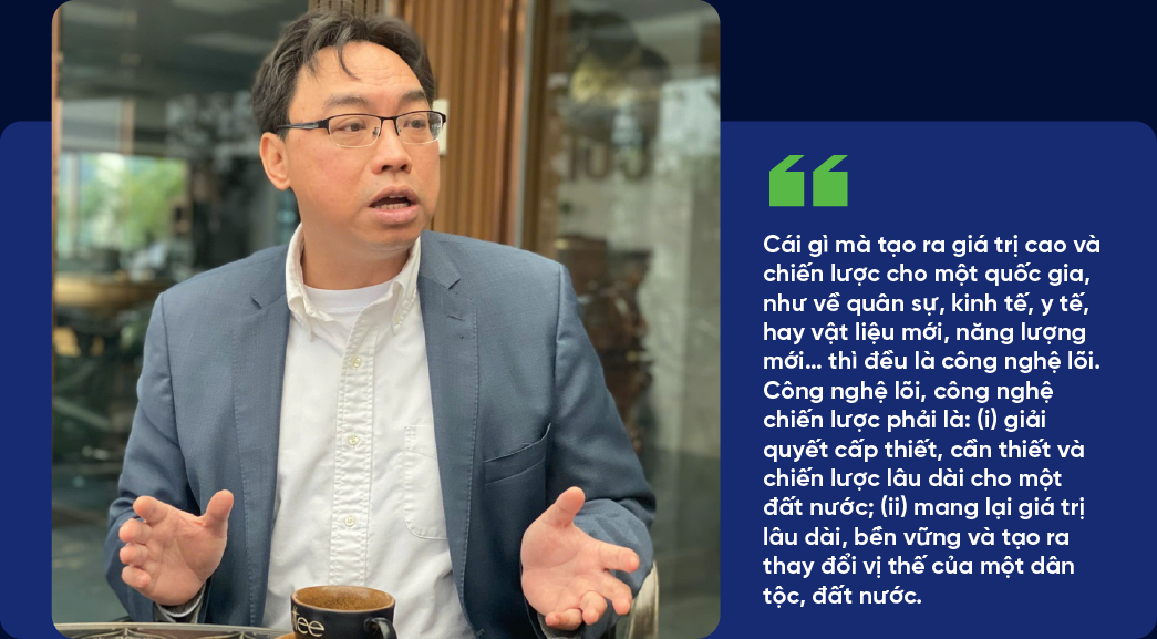 Như đề cập ở trên, trong Nghị quyết 57, Việt Nam đặt mục tiêu từng bước làm chủ các công nghệ lõi, công nghệ chiến lược. Vậy theo ông, như thế nào thì được xem là công nghệ lõi, công nghệ chiến lược?