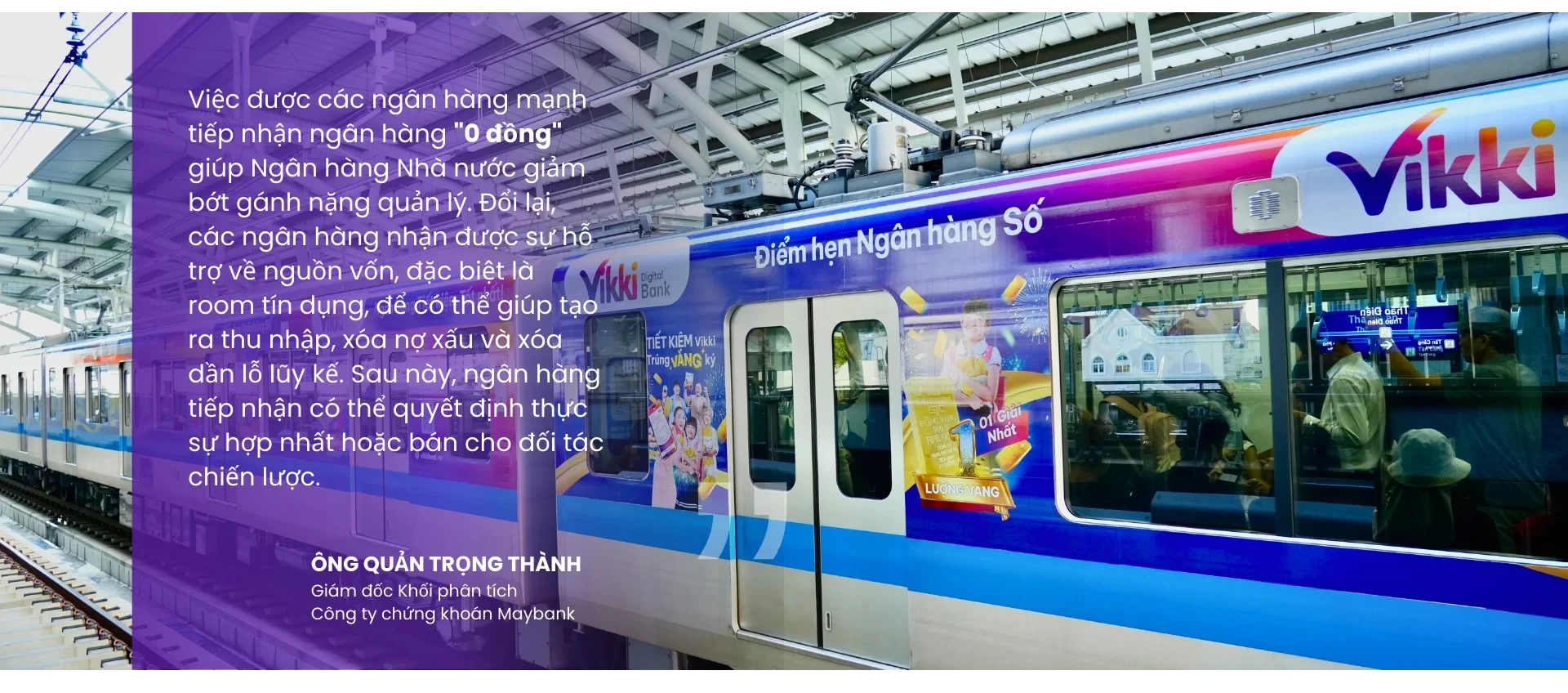Điển hình như câu chuyện chính thức loại bỏ tên tuổi những ngân hàng “0 đồng” vào đầu năm 2025, chuyển hóa chúng thành những “thực thể” khác và có “địa bàn” hoạt động chủ yếu trên không gian mạng. Theo đó, VPBank tiếp nhận GPBank (đã đổi tên nhưng giữ nguyên tên viết tắt), Ngân hàng Đông Á về với HDBank và đổi tên thành Vikki. Trước đó, vào cuối năm 2024, Vietcombank nhận CBBank đổi tên thành VCBNeo, MB nhận OceanBank.