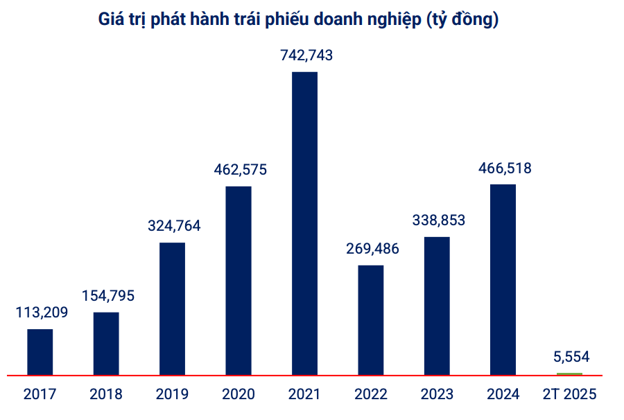 Trong khi 2 tháng đầu năm 2025, lượng trái phiếu doanh nghiệp chỉ phát hành được 5.554 tỷ đồng thì Trái phiếu chính phủ tiếp tục lấn át với tổng giá trị 45.111 tỷ đồng, trên 40,6% kế hoạch quý I/2025. Điều này cho thấy khu vực công đang hút phần lớn lượng vốn trên thị trường qua công cụ trái phiếu và như vậy, thị trường vốn tiếp tục bị méo mó và đình trệ.